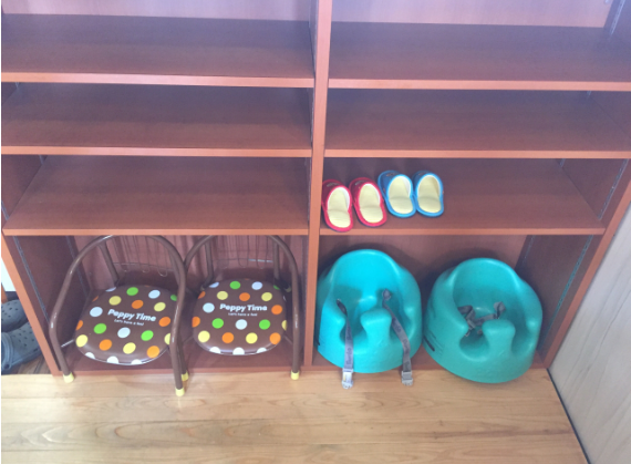 小さいお子様がお座敷でくつろげるよう、バンボや豆椅子のほか絵本もご用意しています。お皿やスプーン、フォークがご入り用の際はお気軽にスタッフにお申し付けください。
